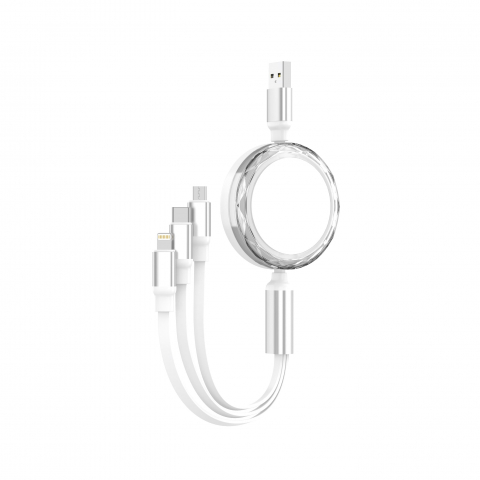 Універсальний кабель 3-в-1 Ruoki — практичне рішення для повсякденної зарядки будь-яких гаджетів. Виготовлений із комбінації зносостійкого алюмінієвого сплаву, міцного ABS-пластику та гнучкого TPE-силікону. Кабель оснащений стандартним USB-A входом та трьома виходами, що забезпечують стабільну силу струму до 3A. Це ідеальний варіант для корпоративного подарунка, який підтримує брендування методами тамподруку або повноколірного УФ-друку. Склад Киев