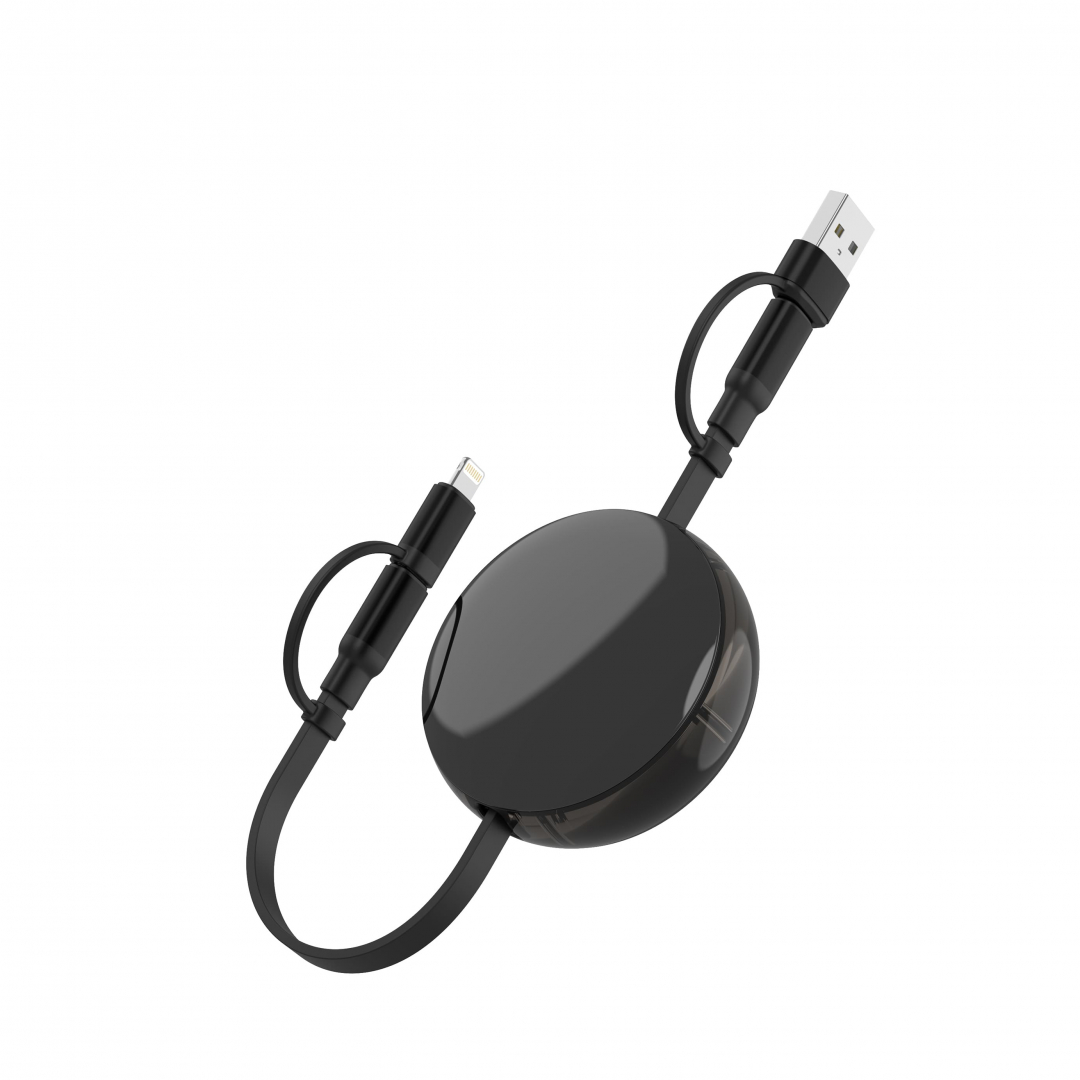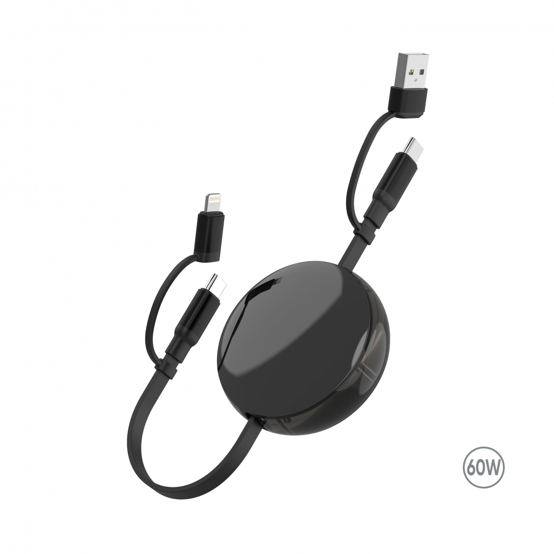 Універсальний кабель 3-в-1 Ving для швидкої зарядки Мультифункціональний аксесуар, що забезпечує високу потужність та надійність. Виготовлений із преміального поєднання алюмінієвого сплаву, міцного ABS-пластику та гнучкого TPE (силікону). Кабель підтримує протокол швидкої зарядки PD до 60W через порт Type-C та забезпечує стабільну роботу з пристроями Apple.