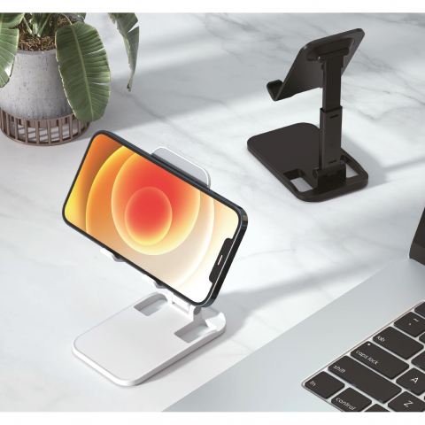 Настольная подставка для мобильных устройств Этот универсальный держатель разработан для надежной фиксации смартфонов и планшетов. Изготовлен из сочетания алюминия и прочного пластика с защитными силиконовыми вставками, предотвращающими скольжение. Благодаря складной конструкции он очень компактен (11,9 x 7,6 см), а в рабочем состоянии поднимается на высоту до 120 мм. Прекрасно подходит для брендирования методами тампопечать или UV DTF. Склад Киев