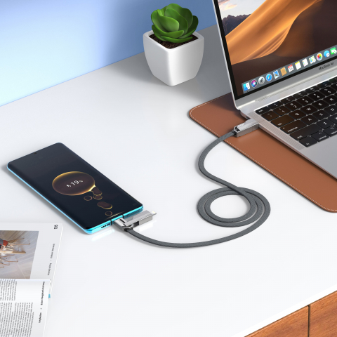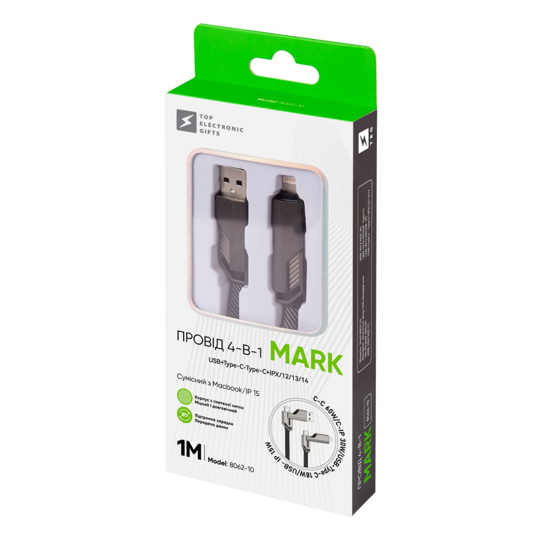 Один кабель для всіх ваших пристроїв! Цей преміальний нейлоновий кабель потужністю 60W легко впорається із зарядкою ноутбука, планшета чи iPhone останніх моделей. Завдяки комбінованим входам (USB + Type-C) та виходам (Type-C + Lightning), вам більше не потрібно носити з собою кілька дротів. Алюмінієвий корпус гарантує довговічність, а підтримка високої напруги (до 20V) забезпечує максимально швидке відновлення енергії ваших гаджетів. Метод нанесення: гравіювання. Склад Киев