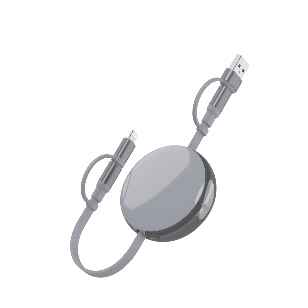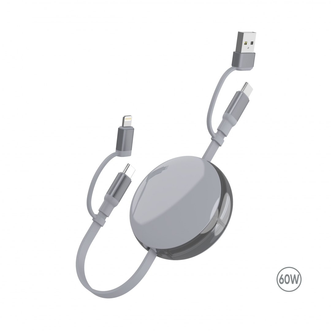 Універсальний кабель 3-в-1 Ving для швидкої зарядки Мультифункціональний аксесуар, що забезпечує високу потужність та надійність. Виготовлений із преміального поєднання алюмінієвого сплаву, міцного ABS-пластику та гнучкого TPE (силікону). Кабель підтримує протокол швидкої зарядки PD до 60W через порт Type-C та забезпечує стабільну роботу з пристроями Apple.