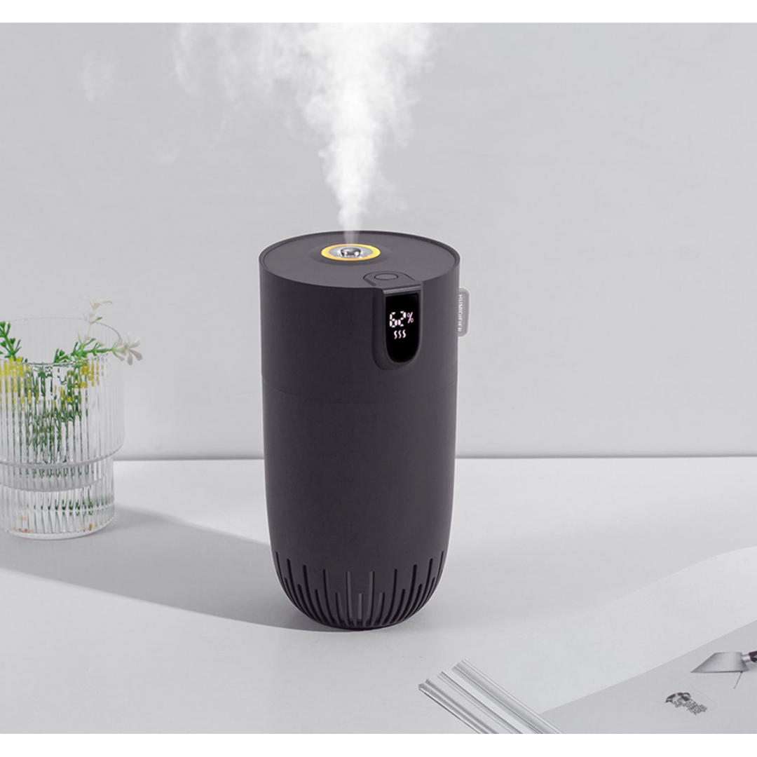 Зволожувач повітря вирізняється стриманим і сучасним дизайном. Конструкція розроблена для зручного наповнення води. Оснащений LED-екраном та працює без зайвого шуму. Додатково передбачено режим яскравого підсвічування. Виконаний із матеріалів ABS/PP. Технічні характеристики: вхідна напруга DC5V, робочий струм 400-800 mA, споживана потужність 2-4 W. Резервуар об'ємом 450 мл забезпечує розпилення води у межах 30-50 мл/год. Габарити приладу: 83 x 91 x 165 мм. Можливі методи друку: тамподрук чи УФ-друк. Склад Киев