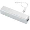Power Bank (портативний акумулятор) для телефону і MP3. Потужність 2200mAh. Заряджається від електромережі (через USB порт, червоний світлодіод контролю заряду, синій світлодіодний індикатор роботи, споживана потужність: 5V, час зарядки: близько 4 годин, елегантний металевий корпус. Упакований в коробку з інструкцією.