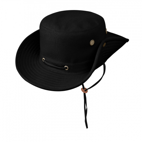 Практичні деталі: бокові кнопки для фіксації полів, вентиляційні отвори, шнурок для надійної фіксації на голові