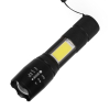 Ліхтарик з лампою LED: 10W T6 + 3W COB, з фокусуючою лінзою і 4-ма режимами свічення (точне світло, розсіяне світло, миготіння, бічне світло), працює від акумулятора 1 х 18650 1200 mAh, заряджається від USB. Має ремінець для руки. Упаковка індивідуальна. Розмір виробу: 132 х 26 х 32 мм. Метод нанесення: Гравіювання. Склад Киев