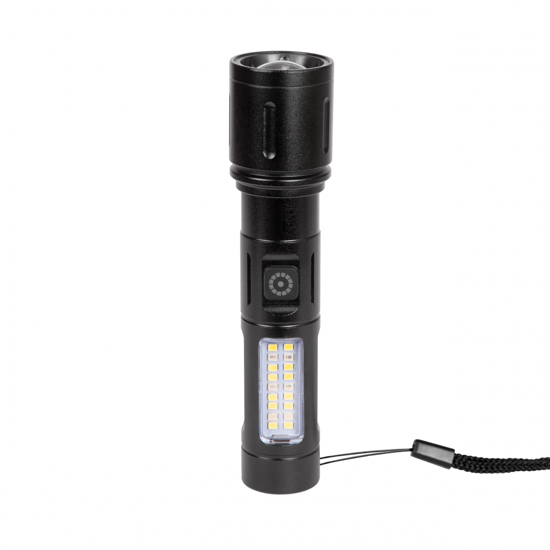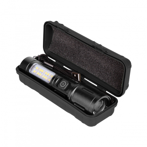 Світлодіодний ліхтарик виготовлений з алюмінію, має акумулятор 1 х 18650 1800 mAh. Режими: 6 ( основний світлодіод: 100%, 50%, страбоскопбічний SMD: білий, червоний, червоний страбоскоп, ВИМК). Спосіб зарядки: USB-TypeC. Розмір: голова діаметр 35 мм, ручка діаметр 28 мм, довжина в закритому 138 мм (відкритий 155 мм). Упаковка індивідуальна. Метод нанесення: Гравіювання. Склад Киев
