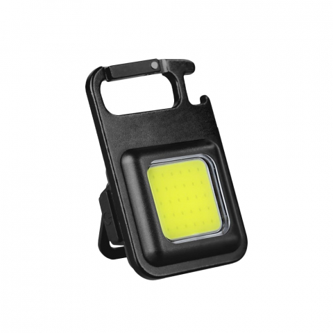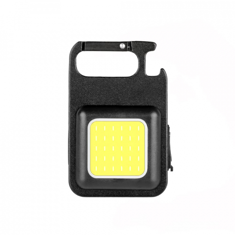 Брелок-ліхтарик з алюмінію має вбудований полімерний акумулятор (300 мАг) з високою водостійкістю. Режими світла 4 - (100%, 50%, страбоскоп, ВИМК., довге натискання вводить суперяскравість). Має спеціальний гачок-карабін, та функцію відкривачки. Вбудований сильний магніт, розбірний кронштейн на задній стінці ліхтарика. Потужний прожектор 6W COB. Розмір виробу: 72 x 45 x 21 мм. Метод нанесення: Гравіювання. УФ друк. Склад Киев