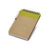 Блокнот на 60 аркушів виготовлений з вдруге переробленого картону і паперу. Еко ручка входить в набір і пише чорним кольором.