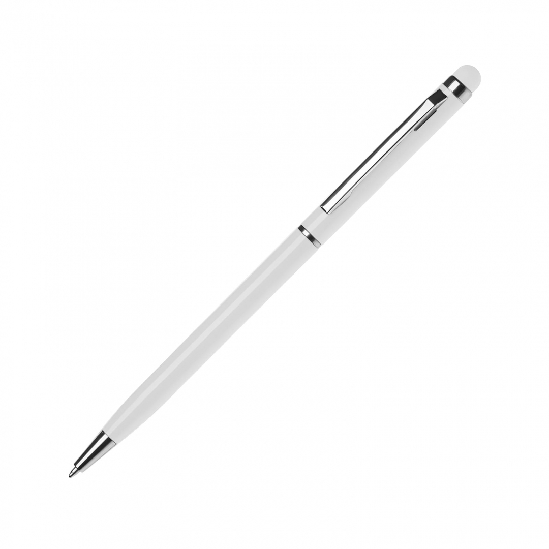 Ручка-стилус шариковая, корпус металлический. Покрытие глянцевое, стержень с синими чернилами. Способ нанесения: тампопечать, гравировка, УФ печать.