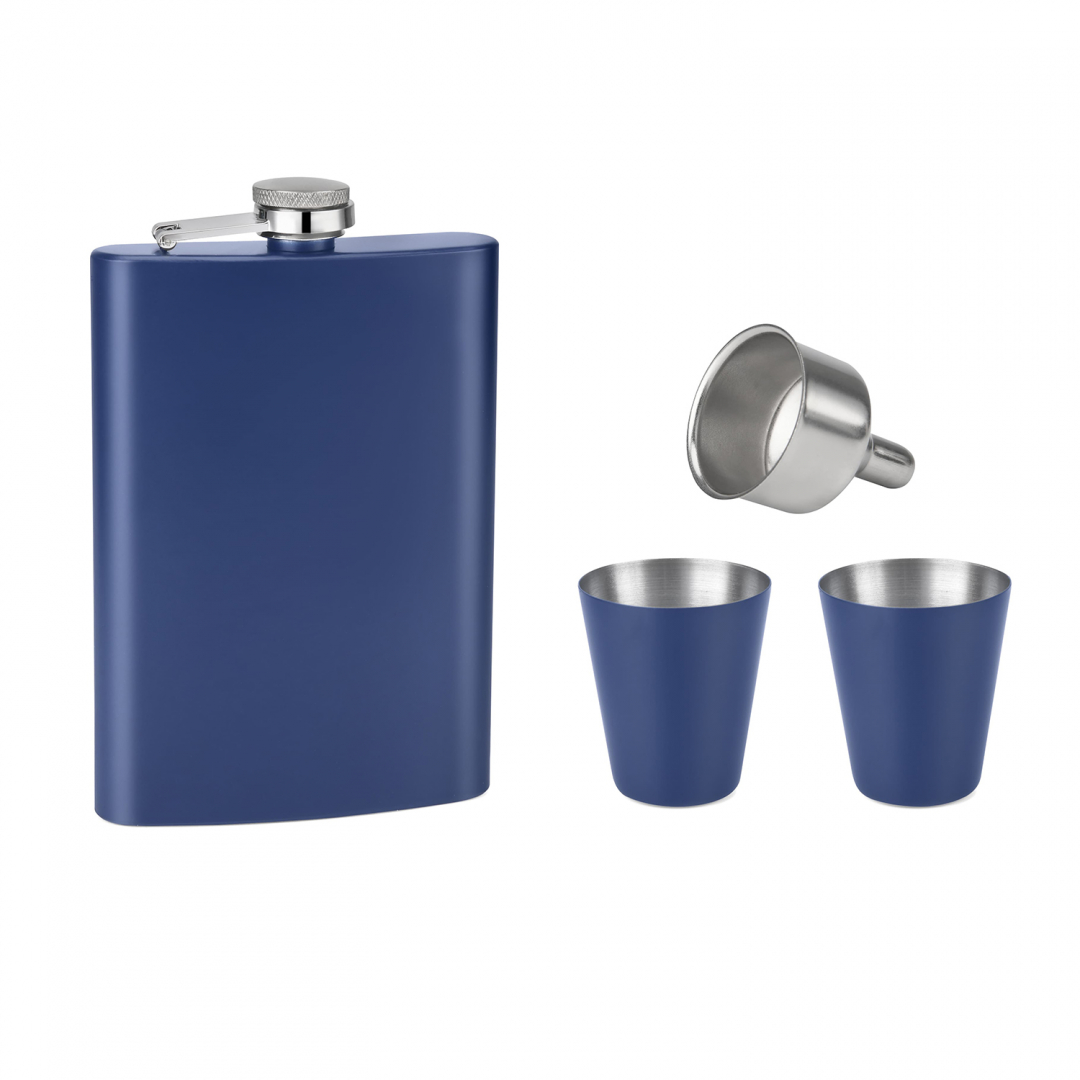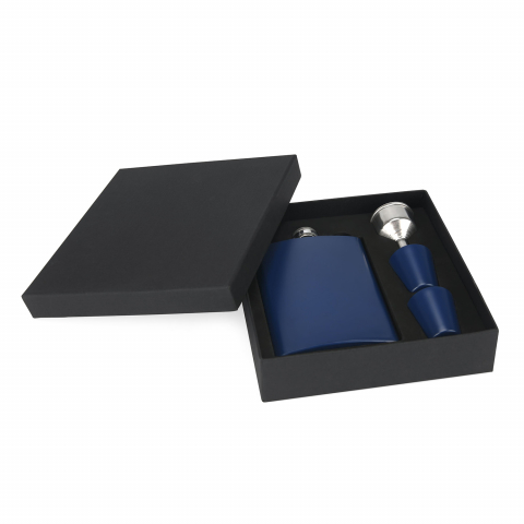 Набор фляга и 2 рюмки черного матового цвета с воронкой в черной подарочной коробке из нержавеющей стали с одинарной стенкой. Размер изделия: 92 х 142 х 22 мм. Метод нанесения: гравировка, УФ печать. Склад Киев