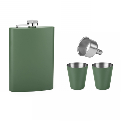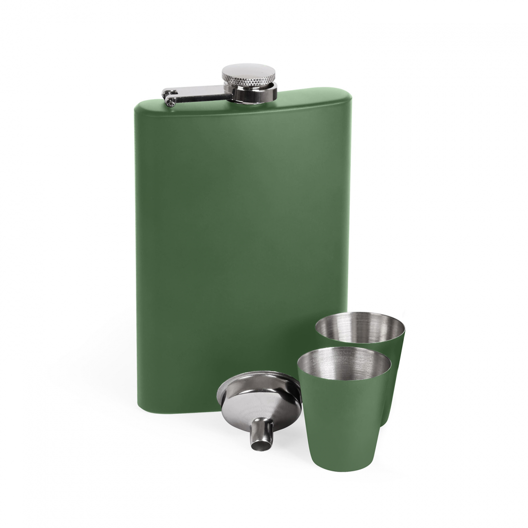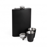 Набір фляга та 2 чарки чорного матового кольору з лійкою в чорній подарунковій коробці з нержавіючої сталі, з одинарною стінкою. Розмір виробу: 92 х 142 х 22 mm. Метод нанесення: гравірування, УФ друк. Склад Киев