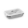 Герметичний ланч-бокс з силікону і поліпропілену з відділенням 640 мл. Герметична кришка з виделкою і ножем для інструментів. Підходить для використання в мікрохвильовій печі, мікрохвильової печі, посудомийній машині. Розмір продукту: 170 х 110 х 66 mm | У складеному вигляді: 170 х 110 х 40 mm. Спосіб нанесення: УФ-друк на обкладинці. Склад Киев