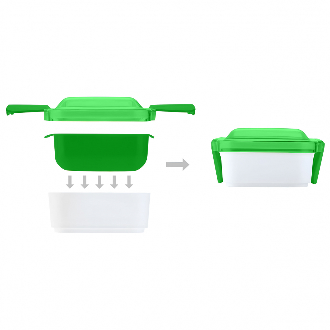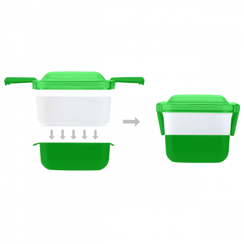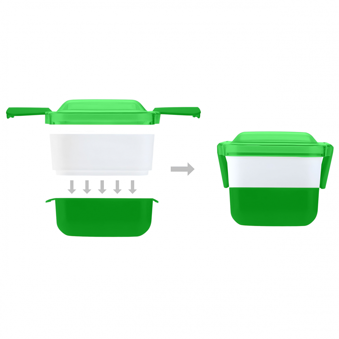 Зручний та стильний ланчбокс із щільною кришкою для збереження свіжості їжі. Матеріал: PP + AS. (Кришка з АС-пластику. Зовнішня частина з матеріалу PP. Безпечний харчовий пластик, стійкий до пошкоджень). Кришку не можна використовувати в мікрохвильовій печі. Об’єм: 950 мл. Подвійна конструкція – складається з двох окремих контейнерів що дозволяє розділяти страви. Щільна кришка з фіксатором (подвійні замки) – надійно закривається, запобігаючи протіканню. Компактний дизайн – зручно брати із собою на роботу, навчання чи пікнік. Ідеальний для щоденного використання. Спосіб нанесення: УФ друк, тамподрук. Склад Киев