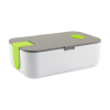 Чудова коробка для сніданку з високоякісного пластику. Кришка ідеально сидить завдяки силіконовому ущільнювача кільцю і додаткової засувки на кришці, С знімним сепаратором і вентиляційним отвором. Засувка може використовуватися як утримувач телефону. Ланч-бокс можна поставити як в холодильник так і в морозильну камеру, підходить для використання в мікрохвильовій печі. Можна мити в посудомийної машинки. Розмір виробу: 192 х 120 x 66 mm. Метод нанесення: шовкодрук, Тамподрук, УФ друк. Склад Киев