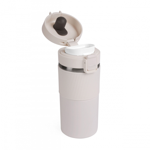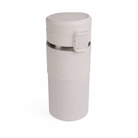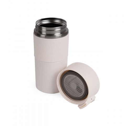 Вакуумна термокружка з нержавіючої сталі, яка тримає температуру гарячим до 6 годин, а холодне до 12 годин, вкрита матовою кольоровою емаллю. Кришка-непроливайка з ситечком, яка при необхідності блокується від випадкового відкривання. Об'єм 370 мл.Розмір виробу: ø85 x 183 мм. Упаковка – індивідуальна. Метод нанесення: Гравіювання, Шовкодрук, УФ-друк. Склад Киев
