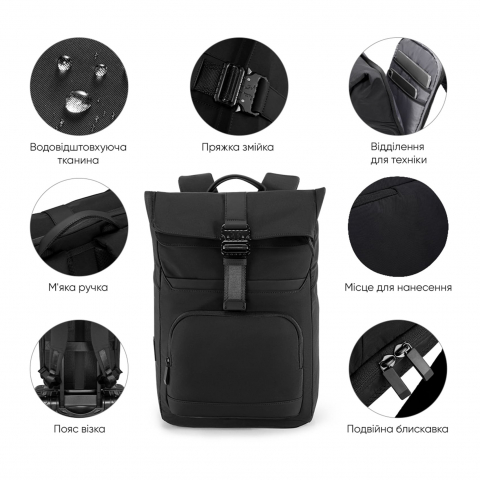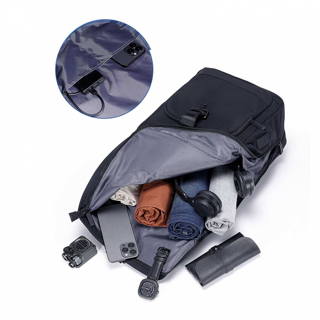 Якісний великий рюкзак міського типу. Тканина високоякісний водонепроникний 100% поліестер фібра, застібка блискавка та стильний металевий замок, має USB Port, основний великий відділ та різні кишені органайзери, роздільний відділ для ноутбука та планшету, одна бокова кишеня та дві попереду, ремінь для валізи. М’яка спинка та лямки. Об'єм: 24 л. Розмір: 440 х 320 х 170 мм. Спосіб нанесення: термотранфер. Склад Киев
