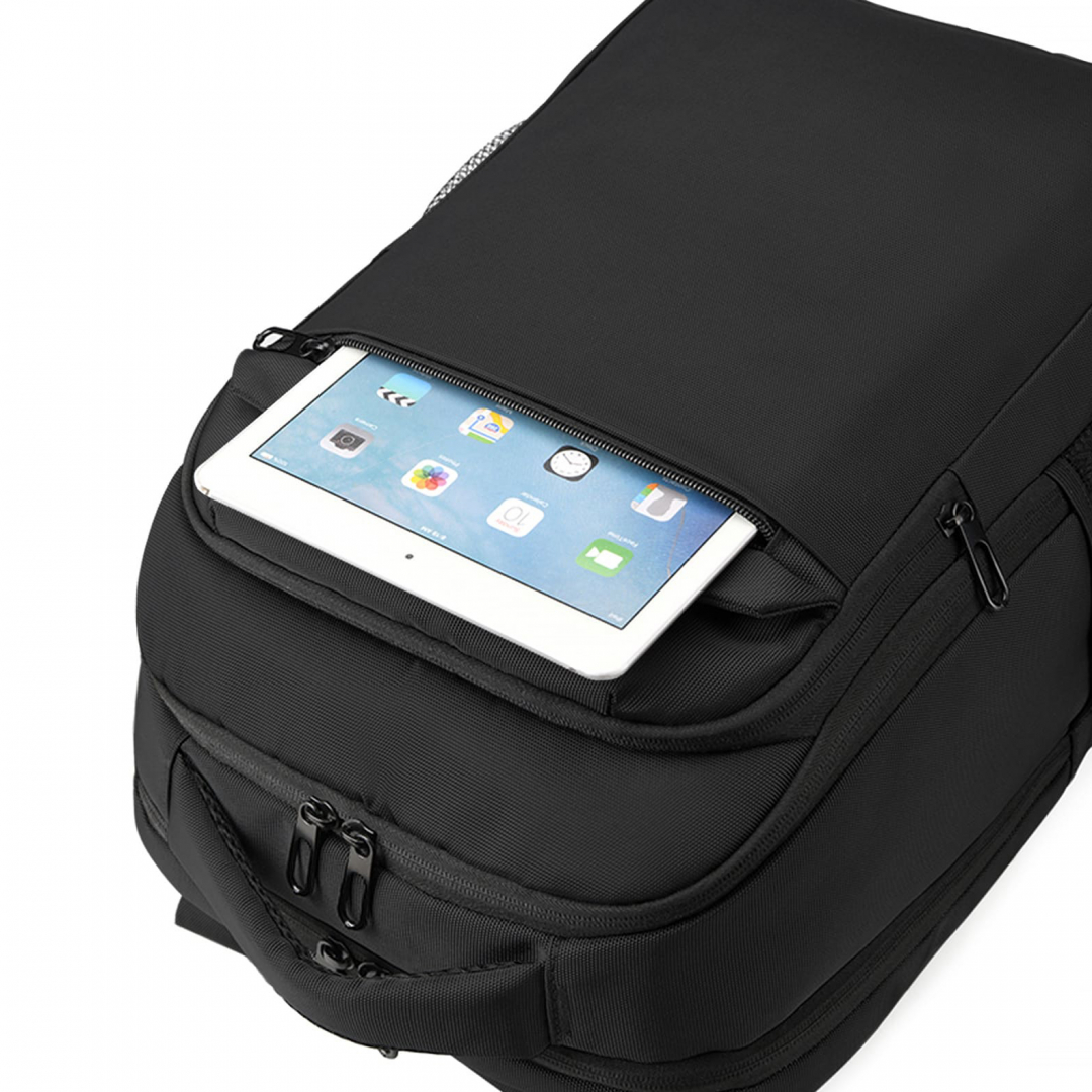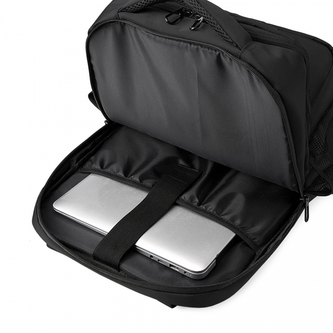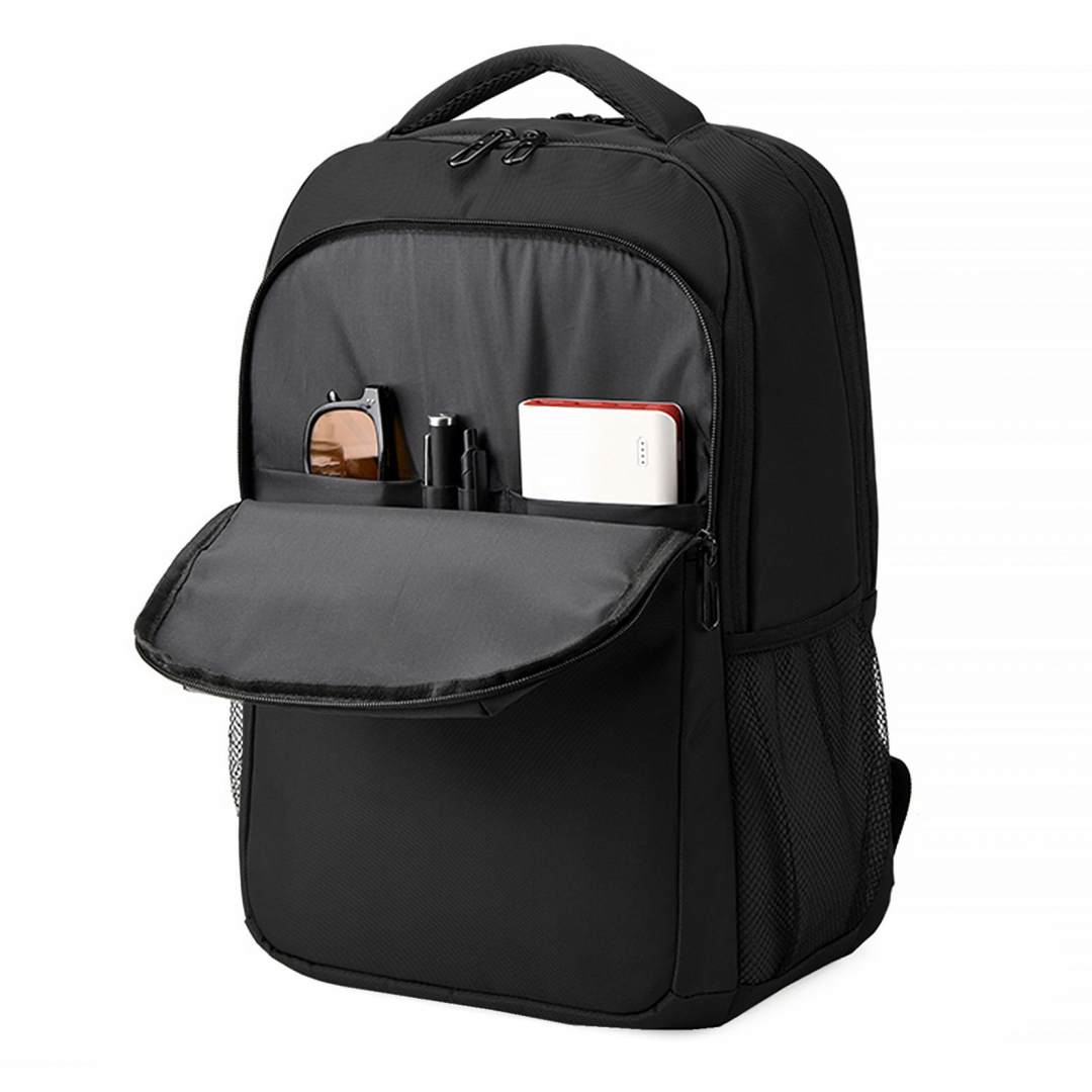 Рюкзак для ноутбука з основним великим відділенням, окремим відділенням для ноутбука 15,6”. Зпереду велика кишеня, по боках дві зручні кишені для пляшки, парасолі або інших речей, прихована кишеня на задній спинці та ремінь для валізи. Тканина водонепроникний 100% поліестер 1200D. Розмір виробу: 450 х 330 х 180 мм. Об'єм 26 л. Спосіб нанесення: термодрук. Склад Киев