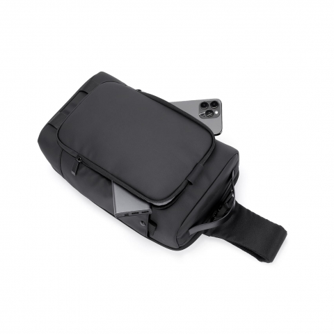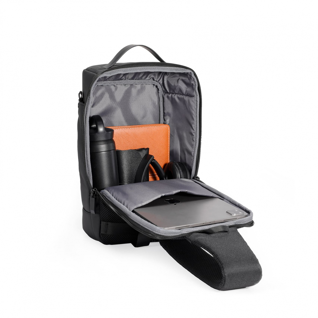 Рюкзак на одно плечо. Ткань высококачественный водонепроницаемый 100% полиэстер, застежка молния, имеет основной отдел, отдел для планшета, карман органайзер, один карман спереди и один сбоку. Мягкая спинка и лямка. Размер изделия: 360 х 230 х 130 мм. Метод нанесения: шелкография, термопечать. Склад Киев