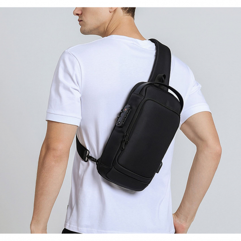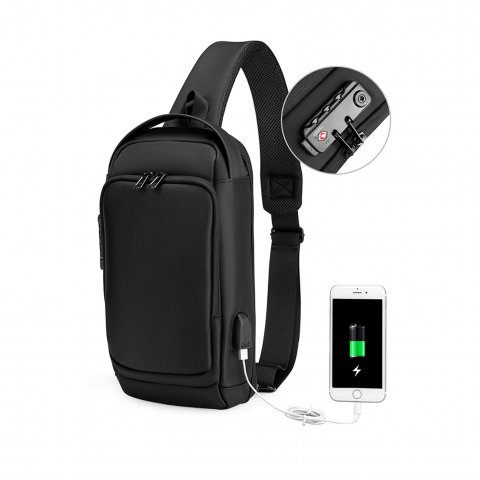 Рюкзак на одно плечо. Ткань высококачественный водонепроницаемый 100% полиэстер, застежка молния, имеет USB Port, замок TSA на основной отдел, карман органайзер и один карман спереди. Мягкая спинка и лямка. Размер изделия: 330 х 170 х 90 мм. Метод нанесения: шелкография, термопечать. Склад Киев